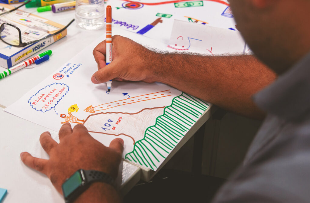 Capacite equipes para pensar graficamente, sintetizar informação e tomar decisões melhores e mais rápidas.