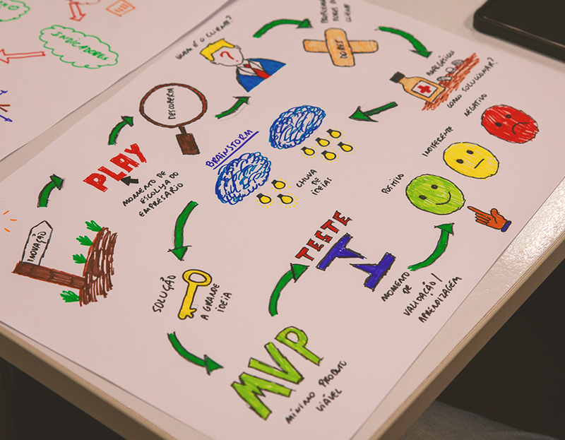 Capacitamos a equipe de consultores, trazendo ferramentas visuais para que eles possam transmitir conceitos como empreendedorismo, finanças e marketing aos empreendedores do interior do Estado.