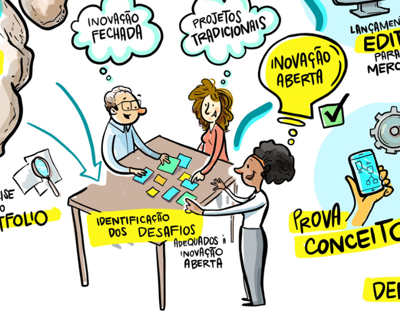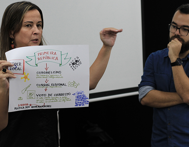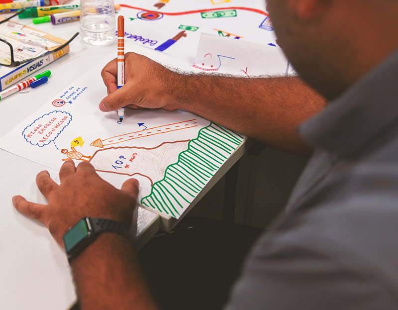 O curso de pensamento visual para lideranças teve como objetivo apresentar possibilidades de mudança de linguagem e uso de ferramentas para comunicar conceitos, ouvir ativamente, engajar e mobilizar pessoas de diversas áreas.